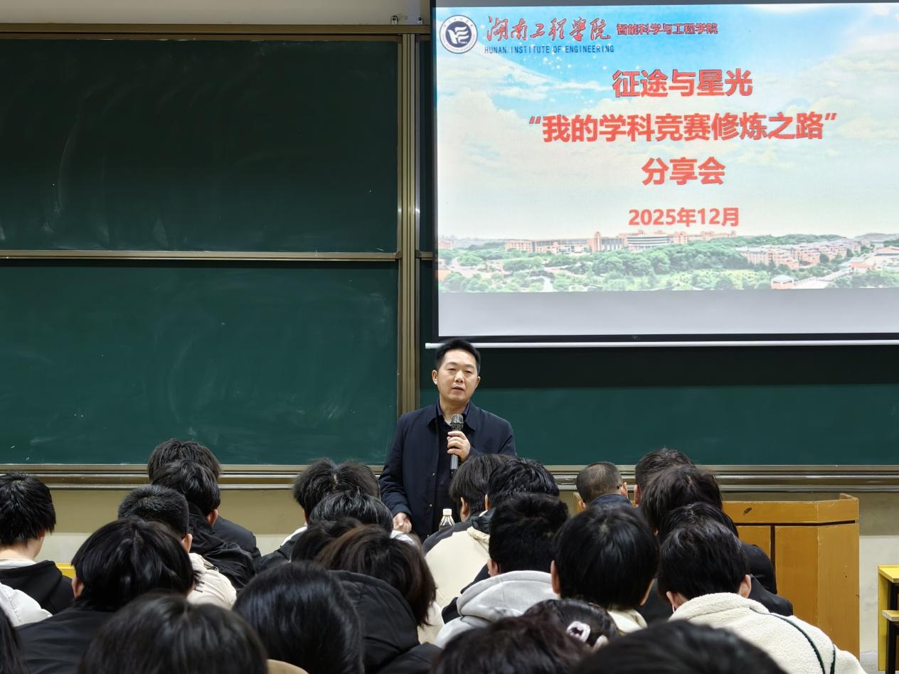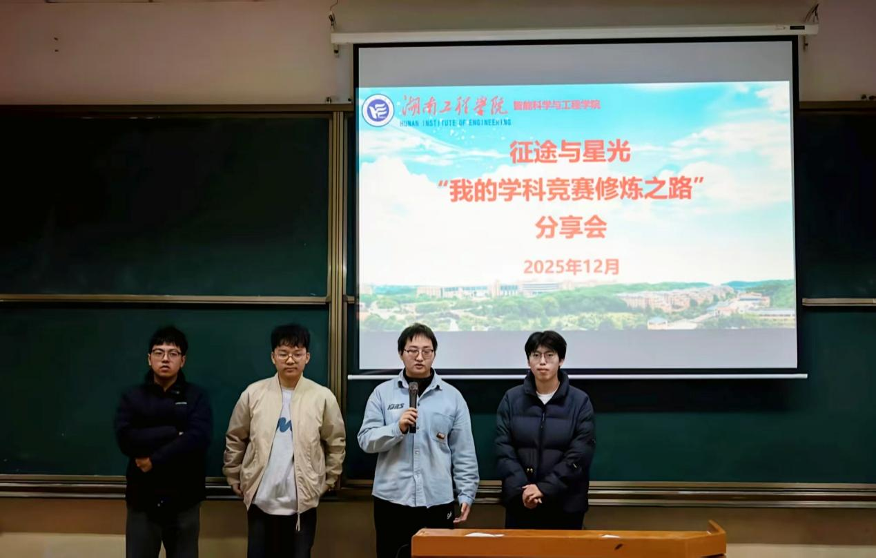 在经验分享环节,来自电气与信息工程公司的肖袁波、郑双龙和机械工程公司的罗皓、邓佳豪四位学长先后登台畅谈个人的竞赛经历和心得体会。一个个充满克服困难、团结协作、忘我投入的感人故事赢得了现场师生阵阵掌声。在互动环节中,四位学长耐心解答了同学们提出的问题。